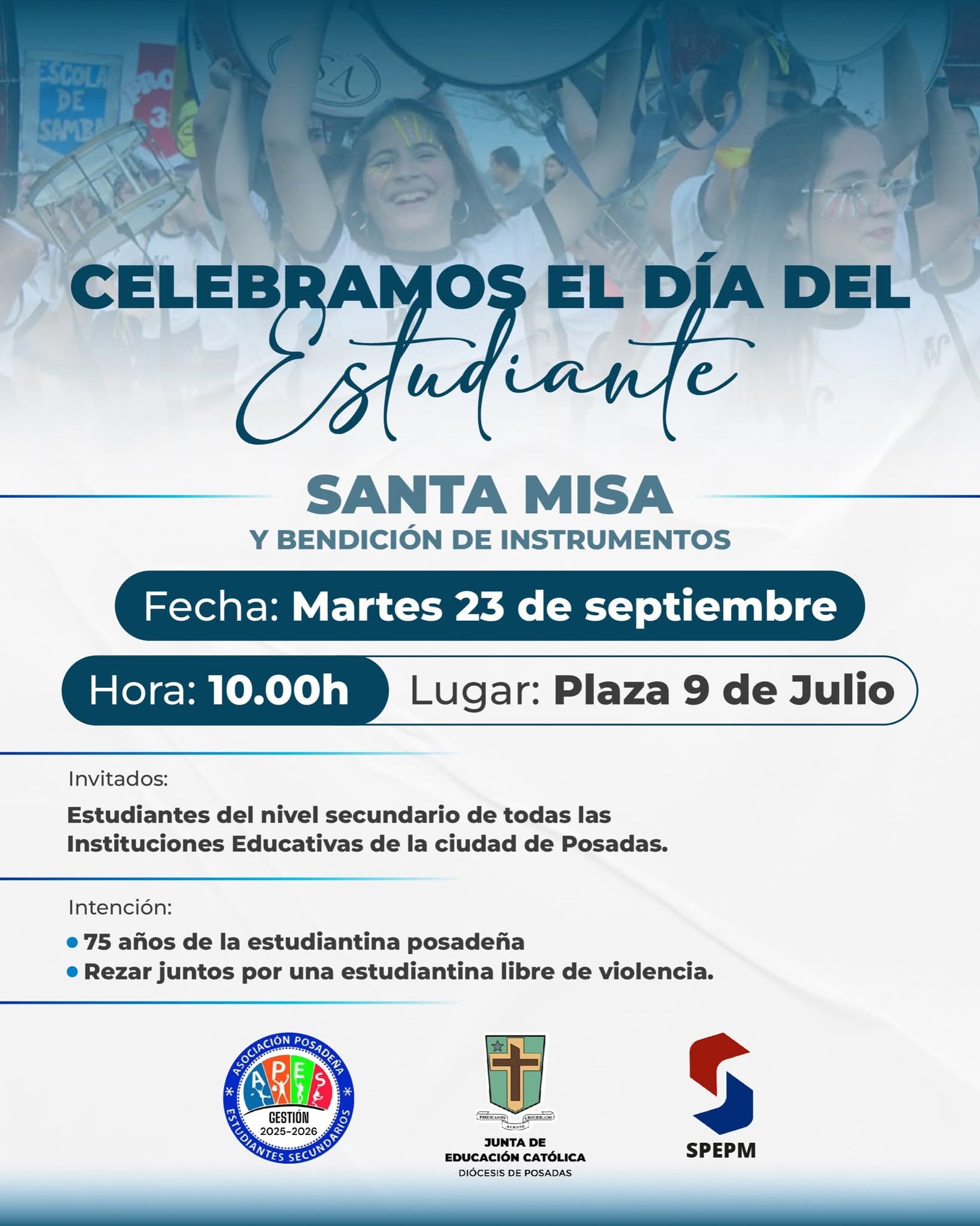 La convocatoria está destinada a los estudiantes de nivel secundario de todas las instituciones educativas de la ciudad. Durante la jornada se llevará a cabo la bendición de estandartes e instrumentos, en el marco de los festejos estudiantiles, con el objetivo de “rezar juntos por una estudiantina libre de violencia”.