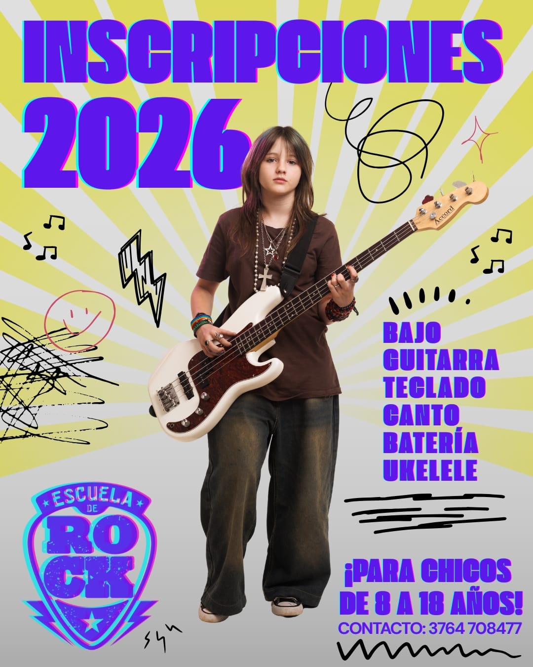 La Escuela de Rock se encuentra actualmente en período de inscripciones para el año 2026. Los talleres comenzarán en febrero, ofreciendo a los estudiantes la posibilidad de explorar distintos instrumentos y disciplinas antes de comprometerse con un aprendizaje más intensivo.