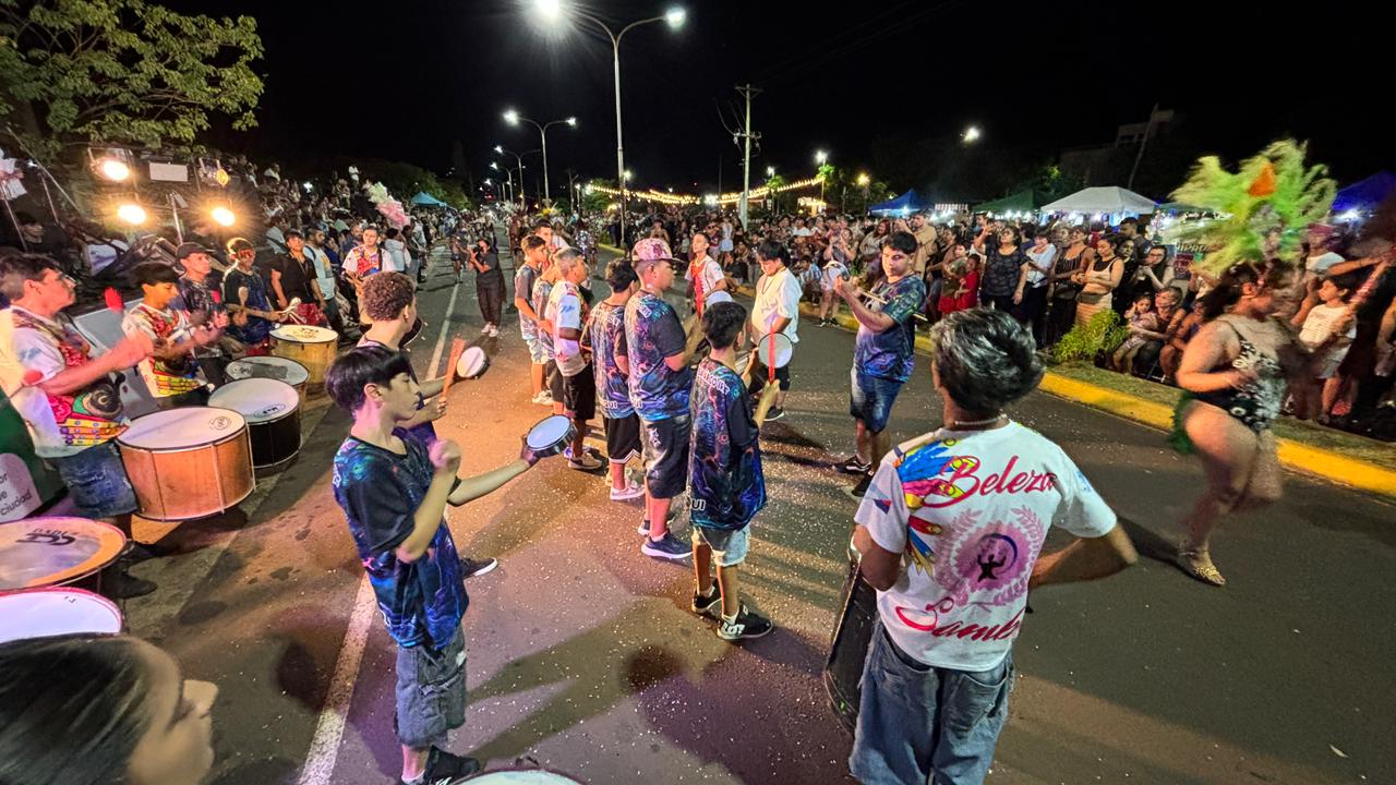 El espectáculo artístico incluyó la participación de Jorge, artista callejero, seguido de Raúl Guerrero y Karen con cumbias regionales. Las Pasistas de Luz, provenientes de Eldorado, Montecarlo y Puerto Rico, aportaron brillo y energía, mientras que Banco Local y Só Tres Samba Brasilera mantuvieron el ritmo carnavalero.