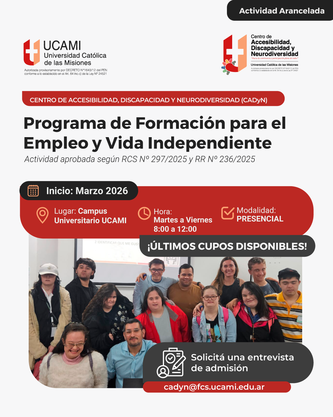 Es una propuesta innovadora de la Universidad Católica de las Misiones destinada a jóvenes y adultos con discapacidad intelectual mayores de 17 años, orientada a promover su inclusión educativa, social y laboral.