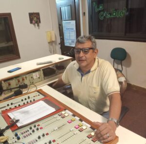 El operador Julio Duarte trabajando, en el cumpleaños de la radio, como hace casi 30 años.