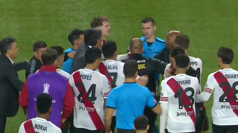 El delantero Maximiliano Salas fue el más exaltado: con gritos e insultos, increpó al juez y debió ser contenido por sus propios compañeros, miembros del cuerpo técnico y hasta efectivos policiales. La escena reflejó el malestar generalizado en el plantel de Marcelo Gallardo, que entendió que varias decisiones arbitrales influyeron en el resultado.