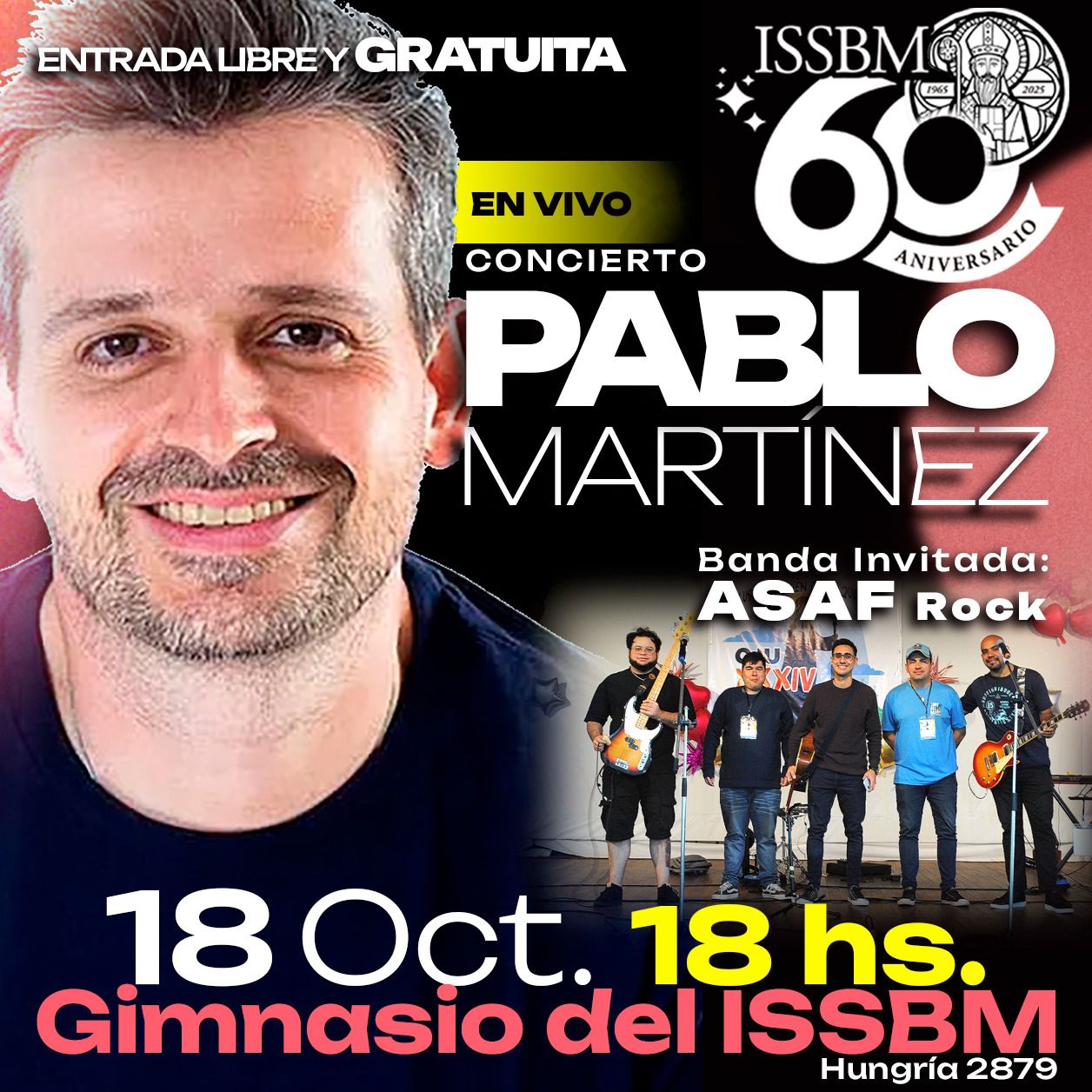 El Instituto Superior San Basilio Magno (ISSBM) celebra este año sus 60 años de trayectoria educativa y lo hace con un evento especial que combinará música, fe y comunidad. La actividad central será un concierto del reconocido cantautor y predicador argentino Pablo Martínez, quien compartirá su música y mensaje de esperanza con alumnos, docentes y público general.