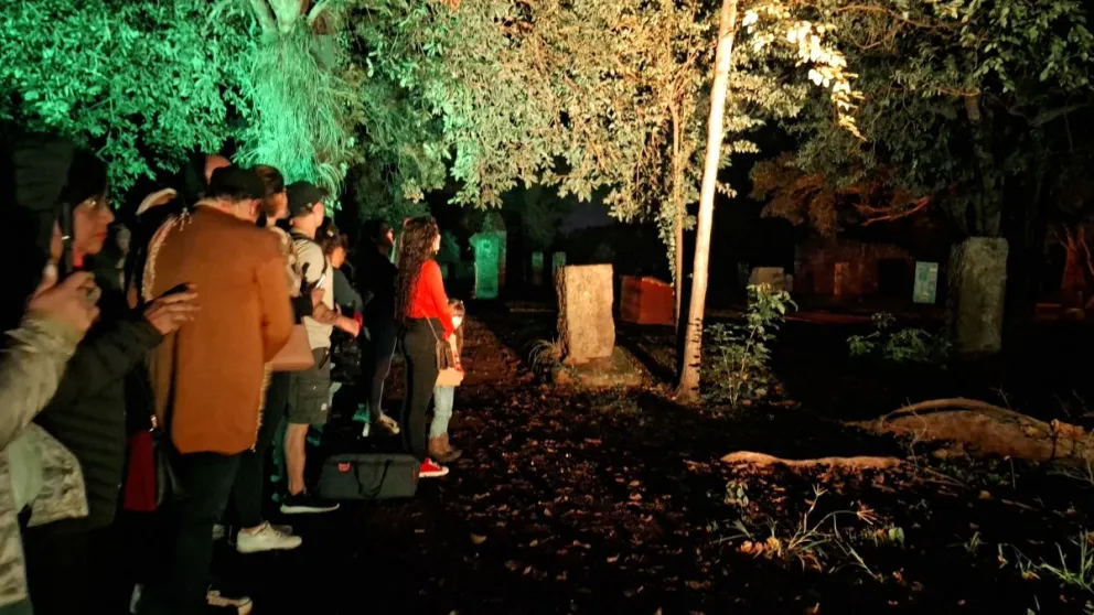 Un cacique proyectado en un árbol da la bienvenida en lengua guaraní antes de continuar su relato en español, guiando a los asistentes por una inmersiva travesía que revive el legado de las Misiones Jesuíticas. “El tiempo pasa volando, te metés tanto en la historia que cuando se apagan las luces, no podés creer que ya terminó”, comentaron algunos asistentes.