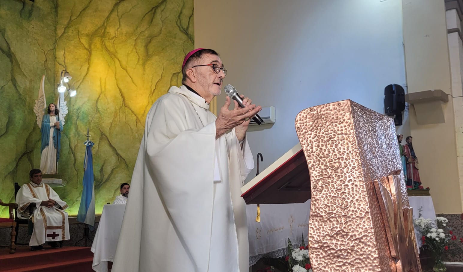 Mons. Martínez dedicó un agradecimiento especial a los sacerdotes presentes: “Quiero agradecerles a ustedes, que están acá, en nombre de Dios, por su trabajo cotidiano, por acompañar a la gente en todas las etapas de la vida, desde el nacimiento hasta la muerte, y por estar presentes en la cotidianidad de la comunidad”. También reconoció la labor de los seminaristas, la vida consagrada y los laicos comprometidos en la diócesis.