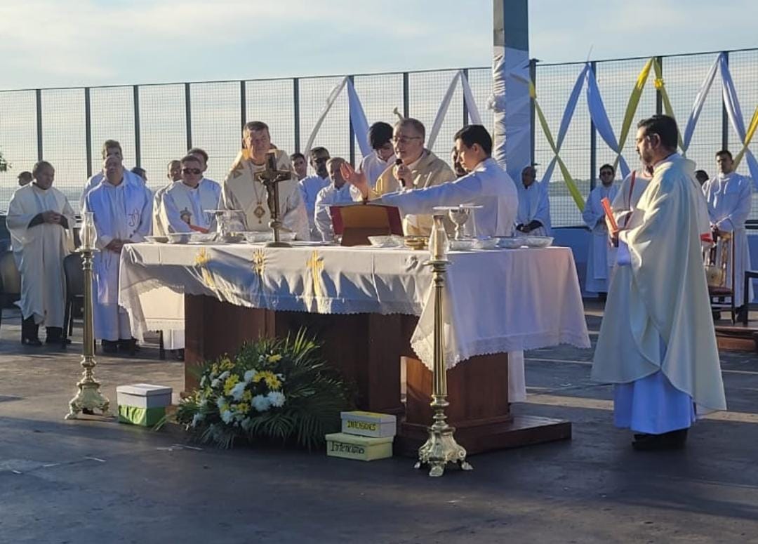 Quiero señalar que al celebrar festivamente esta solemnidad del Corpus Christi continuamos en la senda de san Roque González y los misioneros de las reducciones guaraníes como hace 400 años en nuestra tierra colorada. Las comunidades indígenas tenían una gran devoción al «Cuerpo y Sangre del Señor». En aquel entonces, mientras se realizaba la procesión, los indígenas traían sus instrumentos de trabajo, plantas y animales para que fueran bendecidos por el Corpus Christi.