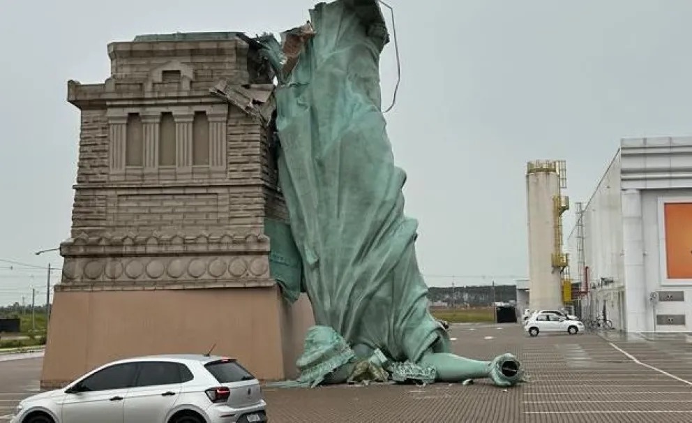 Un fuerte temporal de viento que azotó el sur de Brasil provocó la caída de una réplica de la Estatua de la Libertad instalada frente a un comercio de la cadena Havan, en la ciudad de Guaíba, estado de Rio Grande do Sul. La estructura de gran tamaño se desplomó sobre la vía pública y estuvo a escasos centímetros de impactar contra un automóvil estacionado.