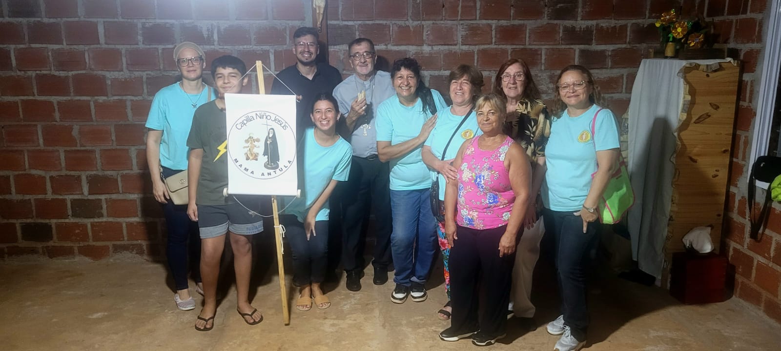 Entre 60 y 80 fieles participaron de la celebración realizada en la capilla “Niño Jesús Mama Antula” del barrio Bicentenario de Itaembé Miní. Durante la homilía, el obispo Martínez invitó a la comunidad a fortalecer la vida de fe y a salir a evangelizar siguiendo el testimonio de Mama Antula.