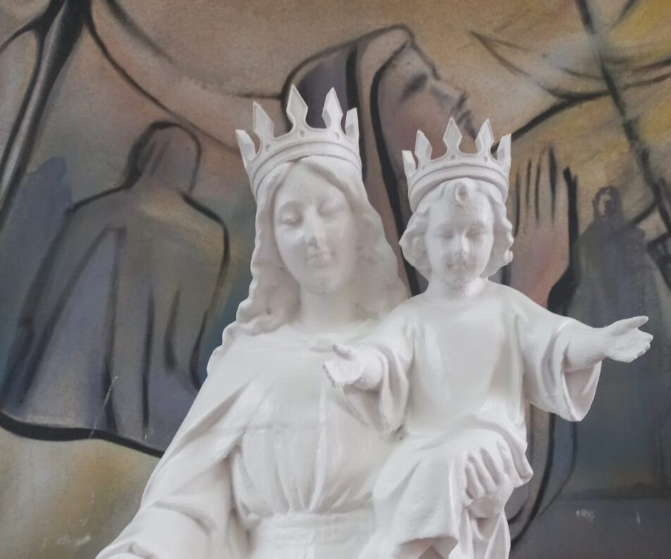 La devoción a María Auxiliadora en Garupá es profunda, silenciosa y constante. Como cada año, en mayo —un mes tradicionalmente lluvioso— se preparan las actividades centrales de la fiesta patronal: peregrinaciones, bicicleteadas, misas al aire libre. Pero había un problema: las imágenes que poseía la comunidad no eran aptas para estas condiciones climáticas. “Desde hace algunos años realizamos actividades al aire libre y las imágenes peregrinas que tenemos no son aptas para la lluvia”, explicaron desde la comunidad.