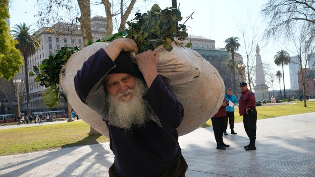 El presidente de la Asociación de Productores Agropecuarios de Misiones (APAM), Hugo Sand, durante una protesta en Buenos Aires en 2024.